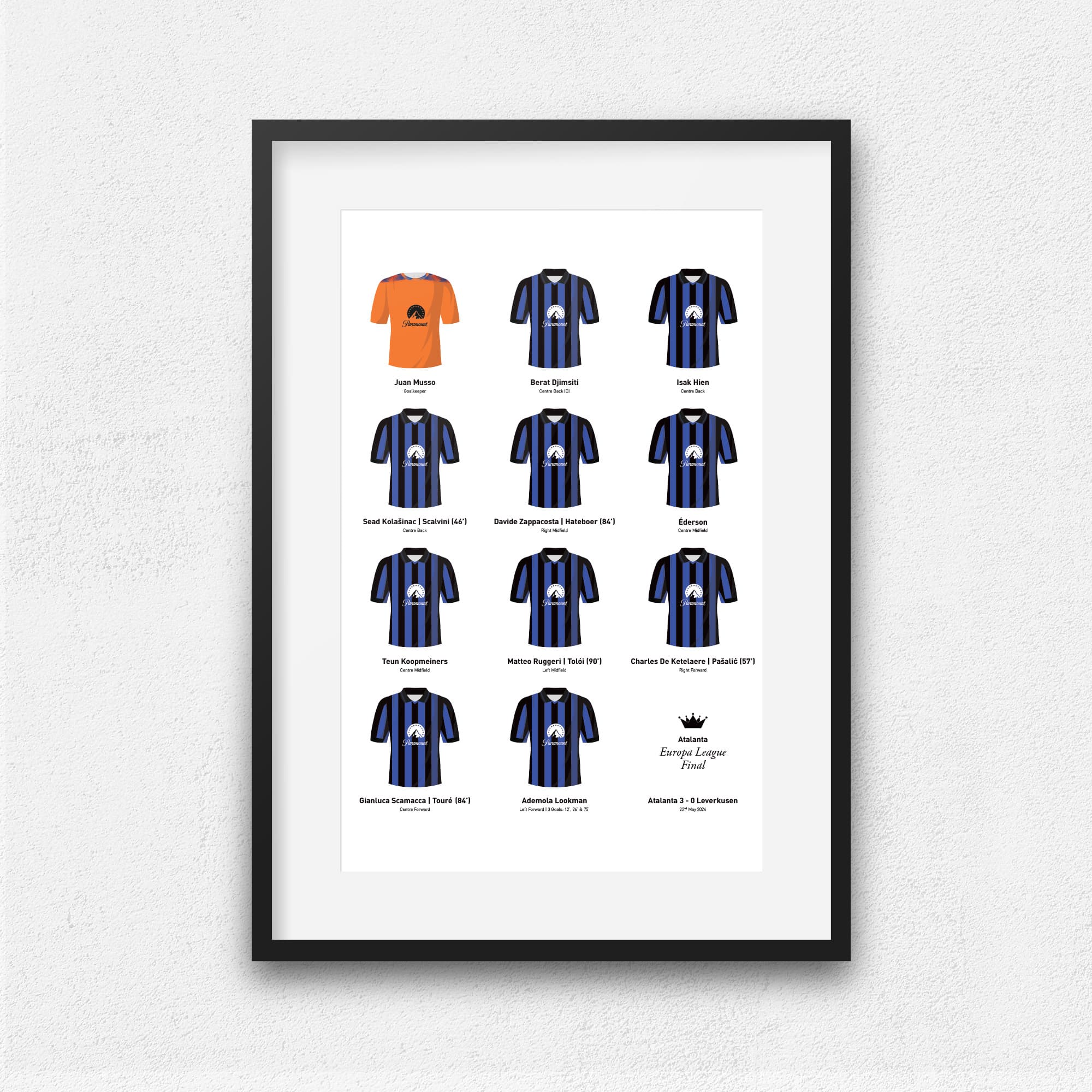 This print, featuring the Atalanta Europa League final winning team of 2024, is the perfect way to celebrate this historic achievement either for yourself or as a very special gift for any Atalanta fan.