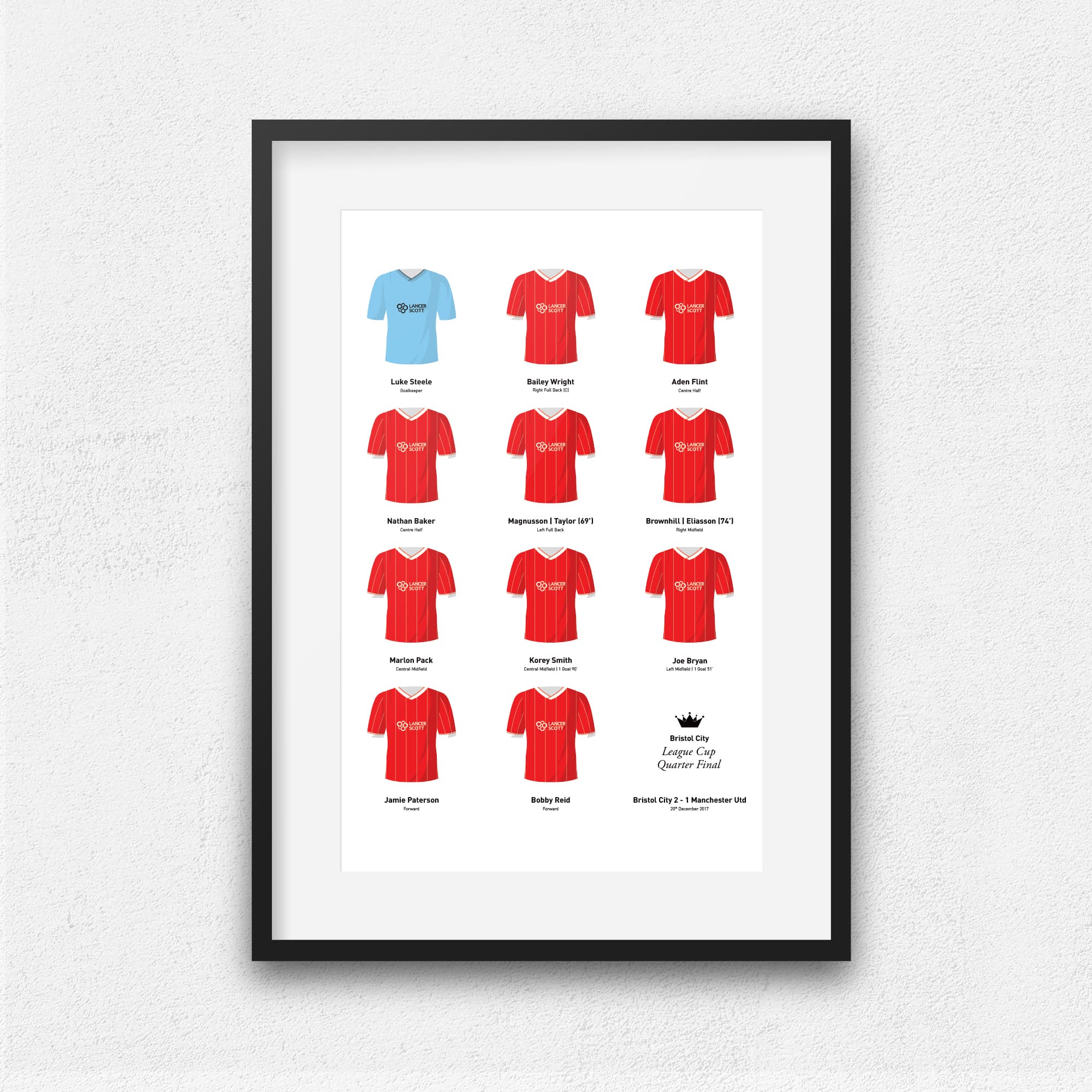 Bristol City 2017 League Cup Quarter Final Football Team Print