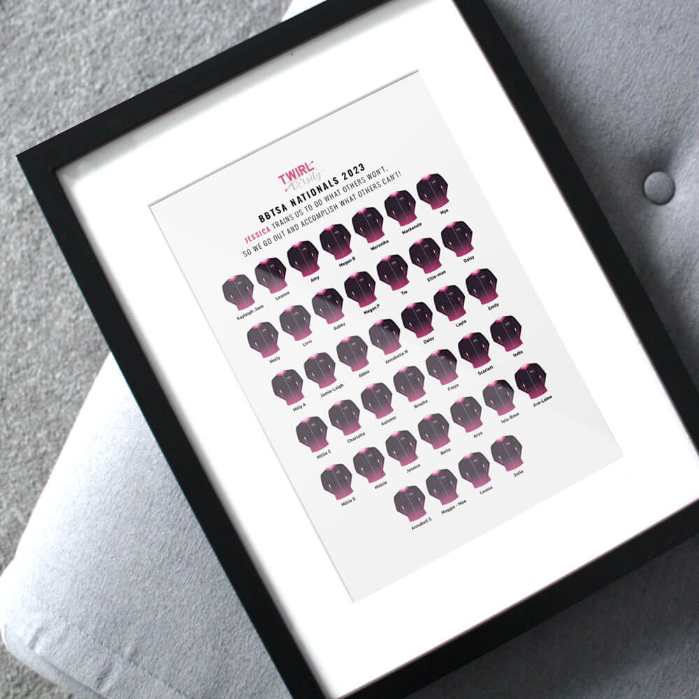 From Junior Football squads and School Rugby sides to local Cricket orders, we really can design any team, you tell us the line up and we will print and frame it for you. It might be Hartlebourgh United's Under 11s for the upcoming season, last years Dalton Year 9 cup winning side or little Al's first ever team from 2011, it’s up to you, we will do everything we can to give you the print you want. Hockey, Basketball, Volleyball, Baseball, American Football, any team sports, just let us know.