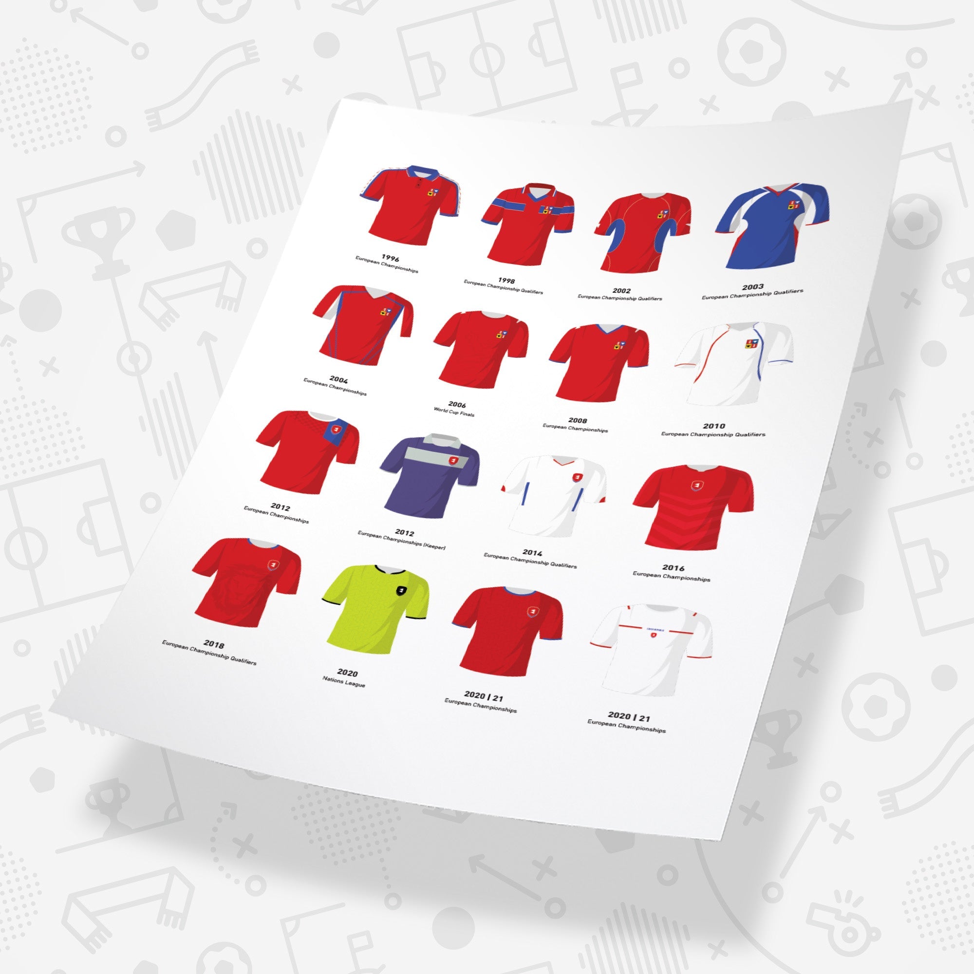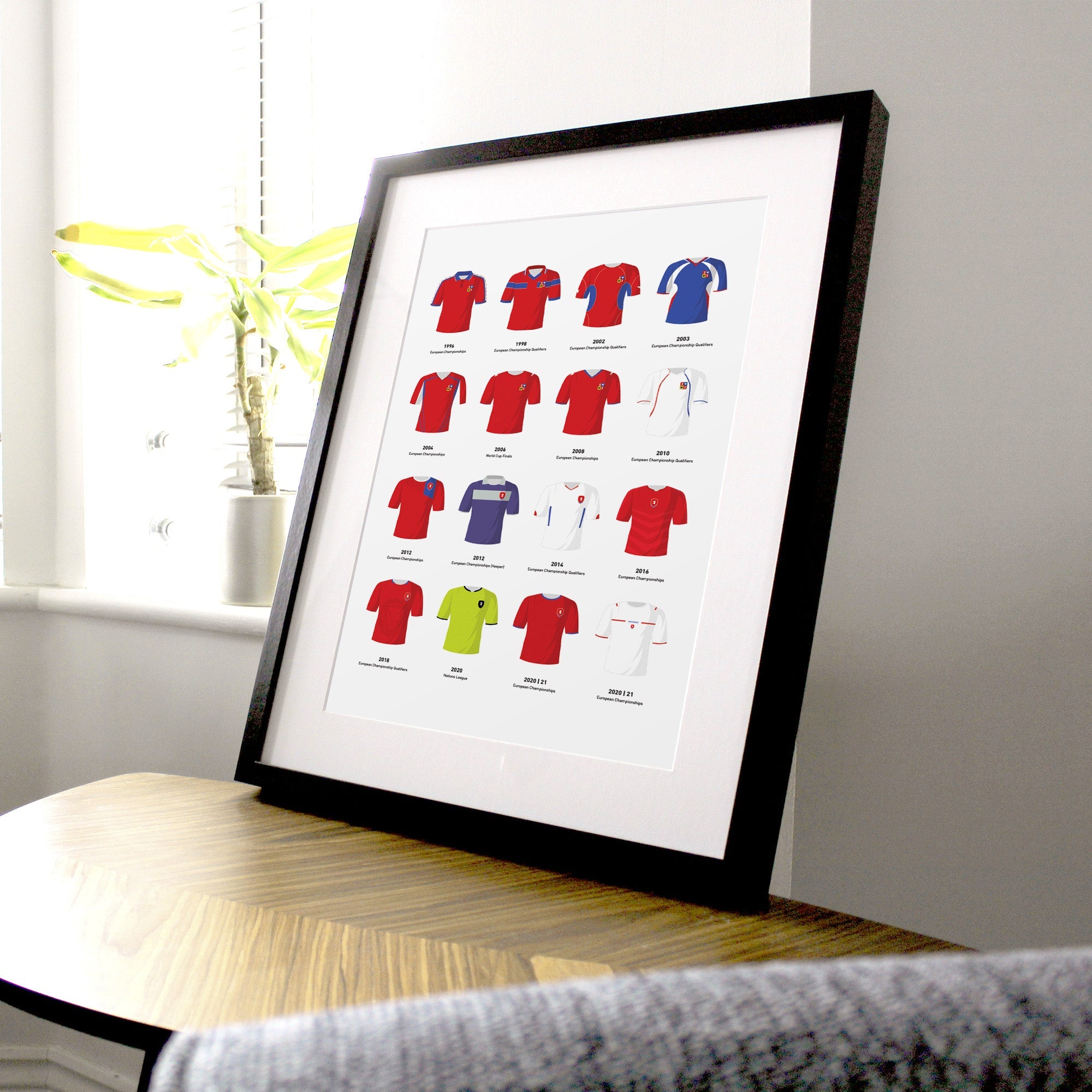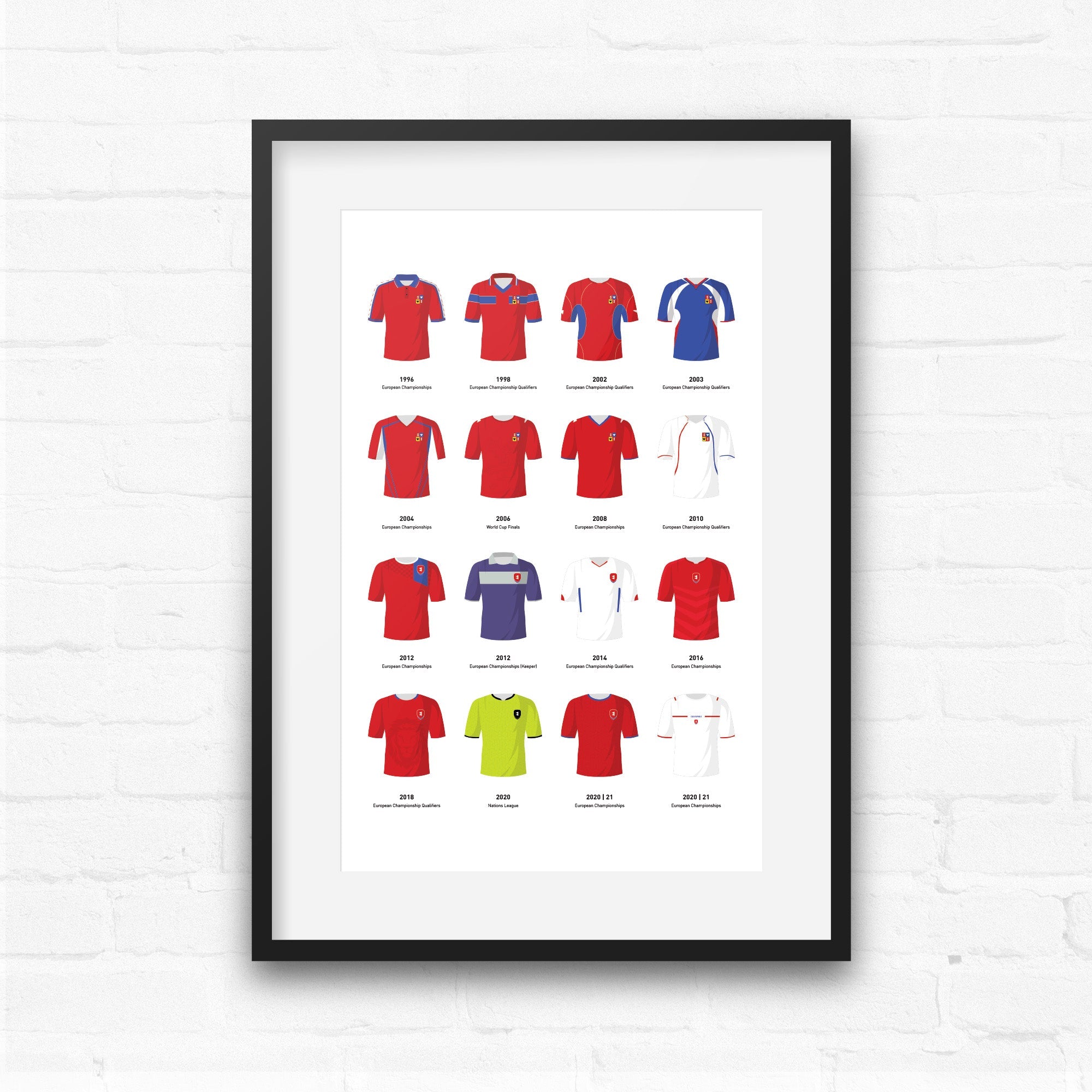 This print showcases some of the most iconic kits that Czech Republic players have worn throughout the history of the national team. The strips range from the 1990's right up through to recent times and is the perfect way to celebrate the heritage of the team either for yourself or as a special gift for any Czech fan.
