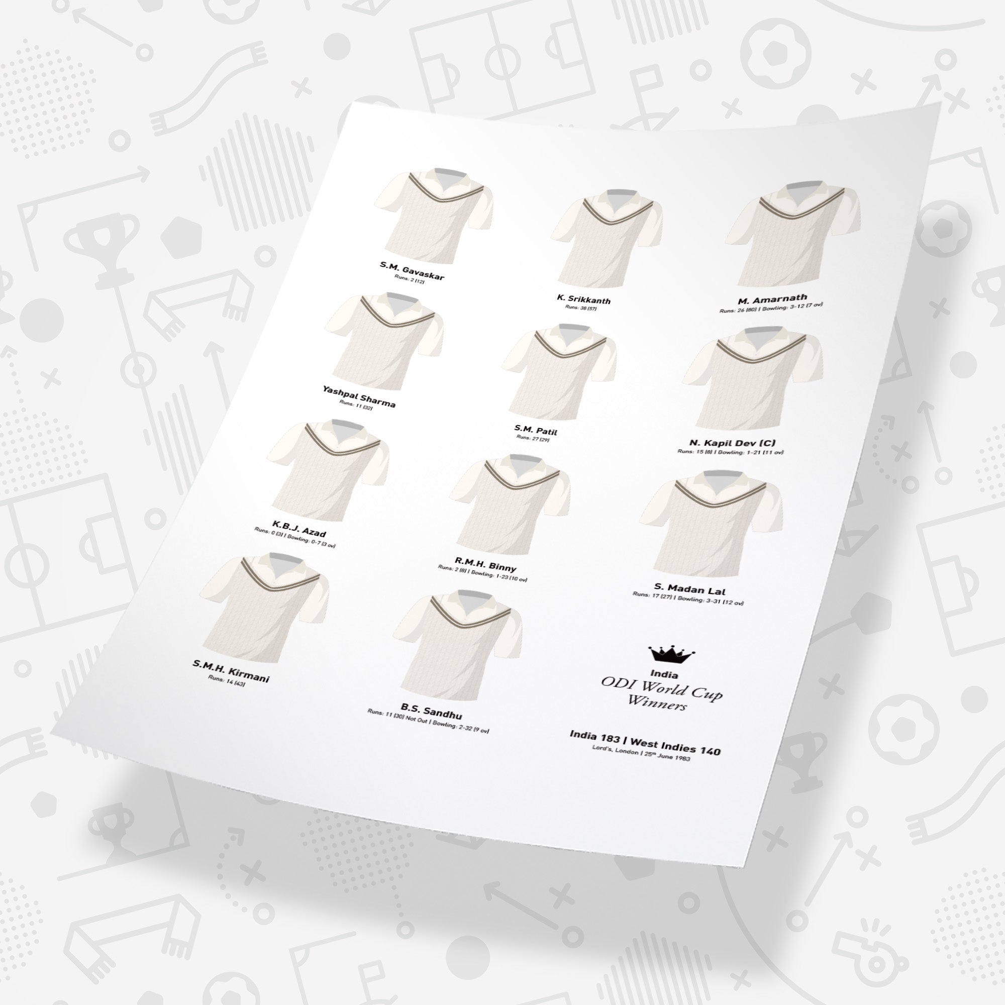 This print, featuring the India World Cup winning team of 1983, is the perfect way to celebrate this historic achievement either for yourself or as a very special gift for any Indian Cricket fan.
