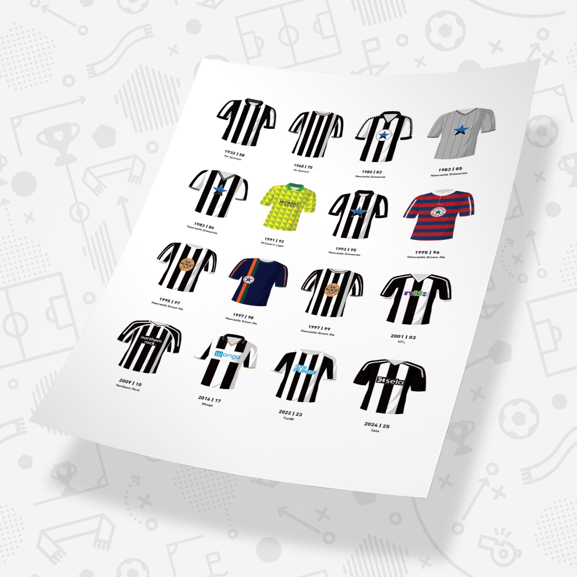 Newcastle Classic Kits Football Team Print